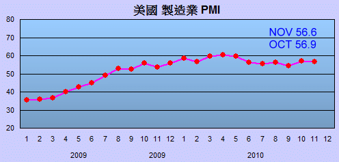 美國供給管理協會(ISM)1日公布的數據顯示,美國11月製造業採購經理人指數(PMI)略降至56.6,但高於分析師預估的56.5。Markit Economics資料顯示,歐元區16國上個月製造業採購經理人指數(PMI)上升到四個月來最高的55.3。